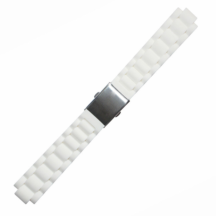 TAILLE ET CONCEPTION : Ce bracelet de montre en caoutchouc de silicone est 20*12mm au loin. Deux morceaux sont la même longueur. Elle sera reliée en pliant le fermoir, ou la boucle de papillon. La conception imite un bracelet de montre d'acier inoxydable. Le bracelet de montre peut être fait sur commande aux couleurs multiples selon les couleurs de livre de Pantone C. Si vous avez d'autres conditions au sujet de la bande de montre, fortement bienvenue pour nous contacter pour concevoir pour vous selon vos préférences. La forme et les tailles peuvent être faites sur commande. L'échantillon est disponible. Il est libre s'il y a des actions.
